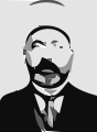 This is a black and white portrait of a man wearing a suit, tie, and mustache. He appears to be looking directly at the camera with an intense expression on his face. The man's attire suggests that he may have been a prominent figure in society or a professional during his time. The portrait has a vintage feel to it, which adds to its historical significance.