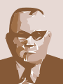 This is a black and white portrait of a man wearing sunglasses. He has a beard, and his head appears to be slightly tilted to the side. The man's attire includes a suit jacket and tie, giving him a formal appearance. The overall style of the portrait suggests that it could have been drawn or painted in an artistic manner, possibly as a representation of the man's character or personality.
