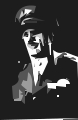 This is a black and white drawing of a man wearing a hat, possibly a military officer. He appears to be looking upwards with his mouth open, giving the impression that he might be singing or shouting. The drawing has a vintage feel to it, which adds an artistic touch to the scene.