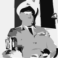 This is a black and white photo of an older man wearing a military uniform. He appears to be sitting down, possibly in a chair or on the ground. The man's attire suggests that he may have served in the military, and his posture gives off a sense of relaxation or contemplation. The image is reminiscent of an old photograph, which adds a historical element to the scene.