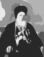 This features a man with a long beard and mustache, wearing a black hat. He is sitting down in the foreground of the picture, while another person can be seen in the background on the right side. The man's attire suggests that he might be from an earlier time period or possibly dressed as a religious figure. The overall atmosphere of the image appears to be somewhat solemn and contemplative, with the man sitting alone and seemingly lost in thought.