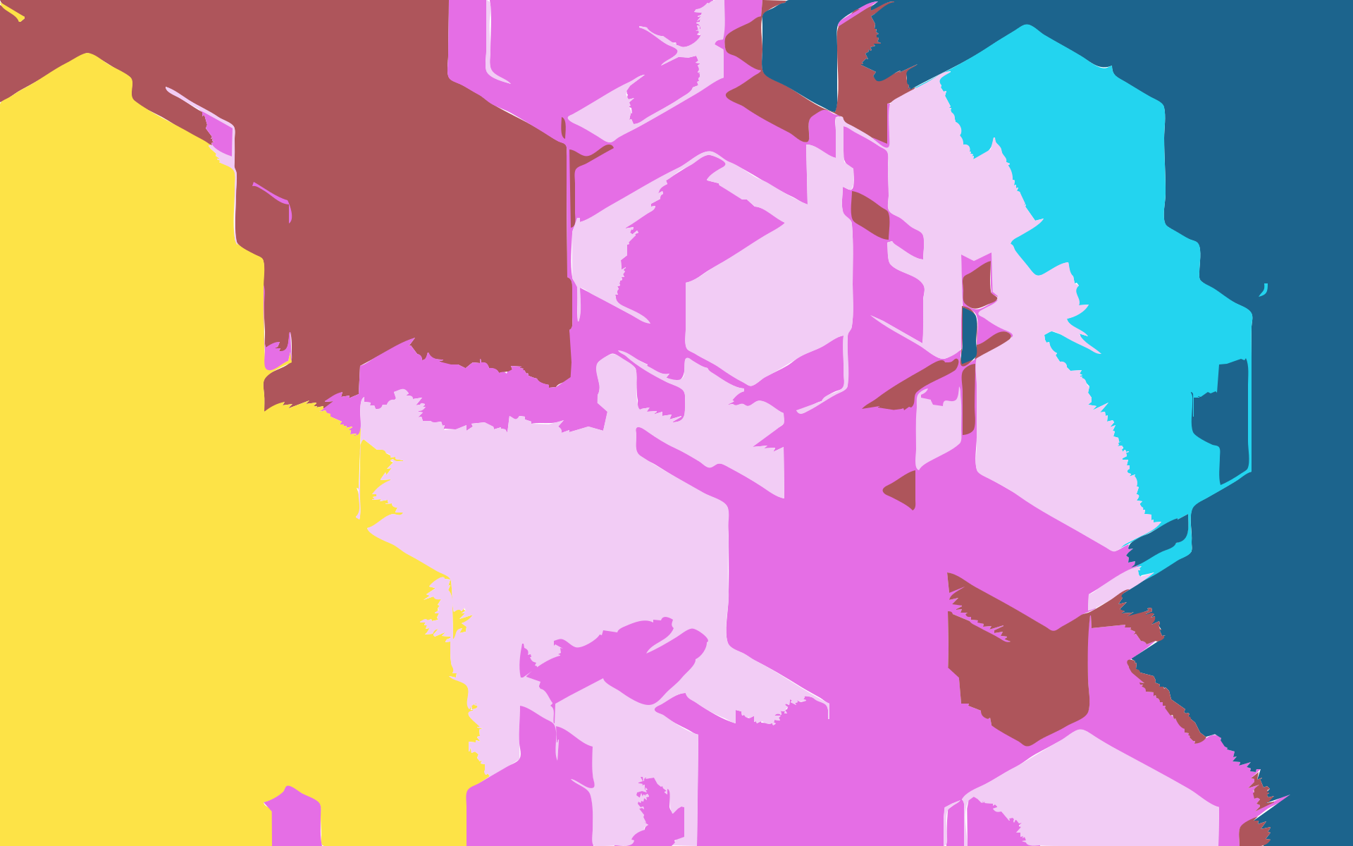 This is a colorful geometric art piece featuring various shapes and colors. There are several distinct geometric shapes scattered throughout the scene, creating an intricate pattern that stands out against the background. The colors used in this artwork are vibrant and eye-catching, making it visually appealing to viewers. Overall, the image showcases a creative and unique design that captures attention with its combination of shapes and bold hues.