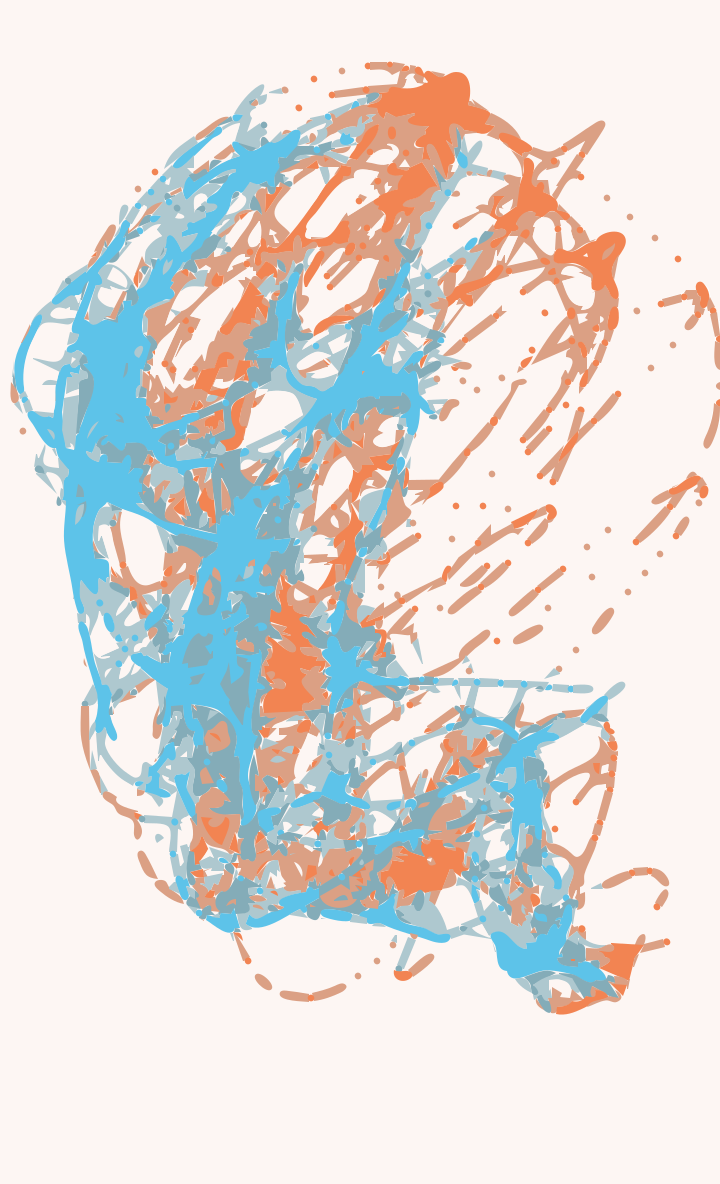 This features a unique artistic piece that combines blue and orange colors in an abstract manner. It appears to be a splash of color on a white surface, creating a visually striking effect. The artwork has no discernible shape or form, making it a creative and unconventional representation of the two colors. This type of art can evoke various emotions and interpretations from viewers, as it challenges traditional notions of color and form in visual art.
