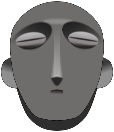 This features a close-up of a gray face with two circles for eyes and a big nose. It appears to be sleeping, giving the impression that it is resting peacefully. The facial features are prominently displayed in this artistic representation, making it an interesting visual piece.