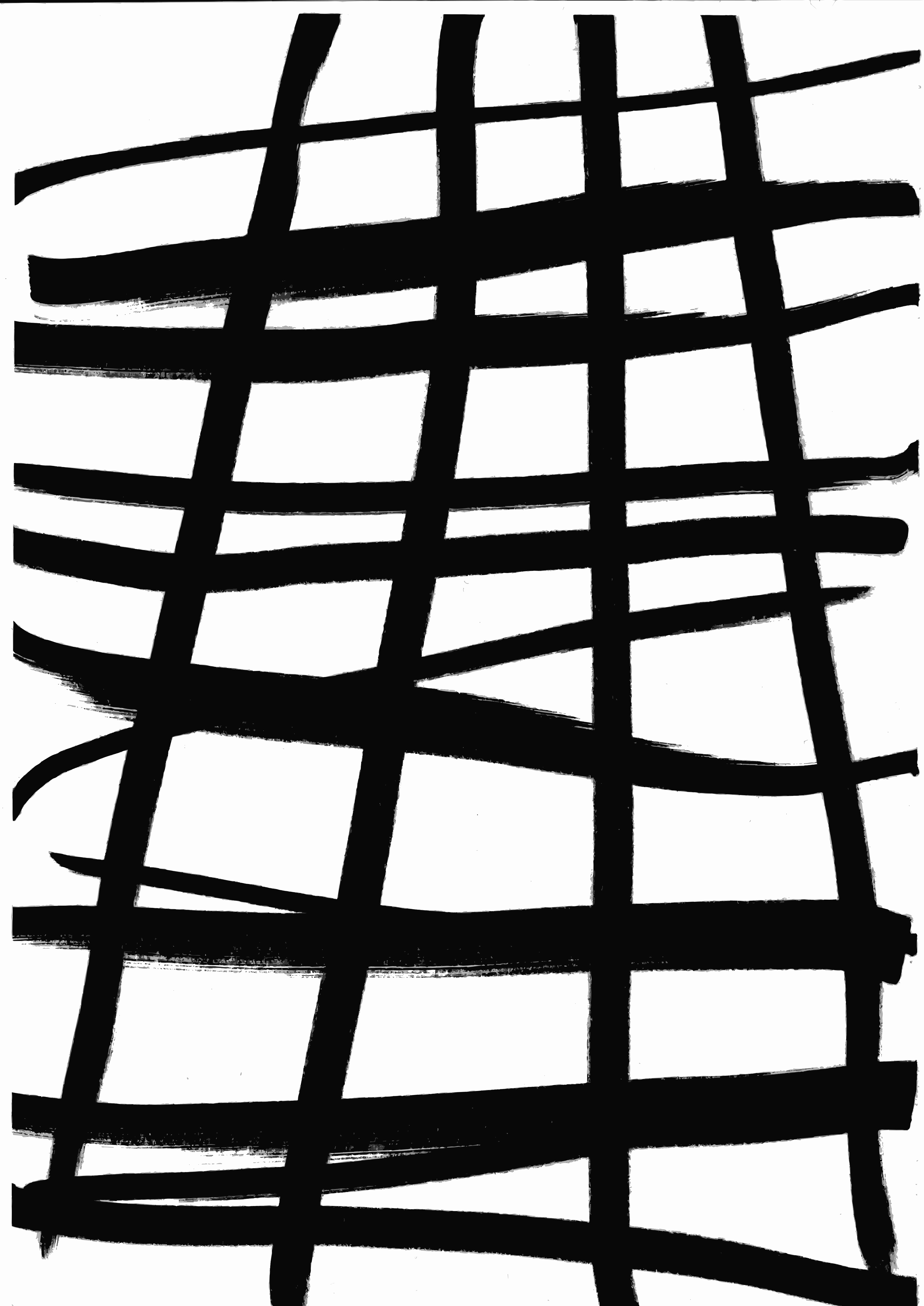 This is a black and white drawing of a pattern, possibly a design or an artistic piece. It features a series of interconnected lines that create a visually interesting composition. The lines are drawn in various directions, creating depth and complexity to the overall design. The contrast between the black and white colors adds a sense of drama and emphasizes the intricate details within the pattern. This drawing could be part of an artistic project or simply a creative expression by its artist.