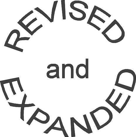 This features a white circle with black text that reads "Revised and Expanded." This sign is likely used to indicate that the content of a book or document has been updated, revised, or expanded upon. The use of a circle suggests that this information is important or central to the topic being discussed.