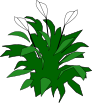 This features a close-up of a green plant with three white flowers. Each flower has a black stem, adding contrast to the overall appearance. The leaves surrounding the flowers are also green in color, creating a harmonious and vibrant scene. This beautifully drawn picture captures the essence of nature and its delicate beauty.