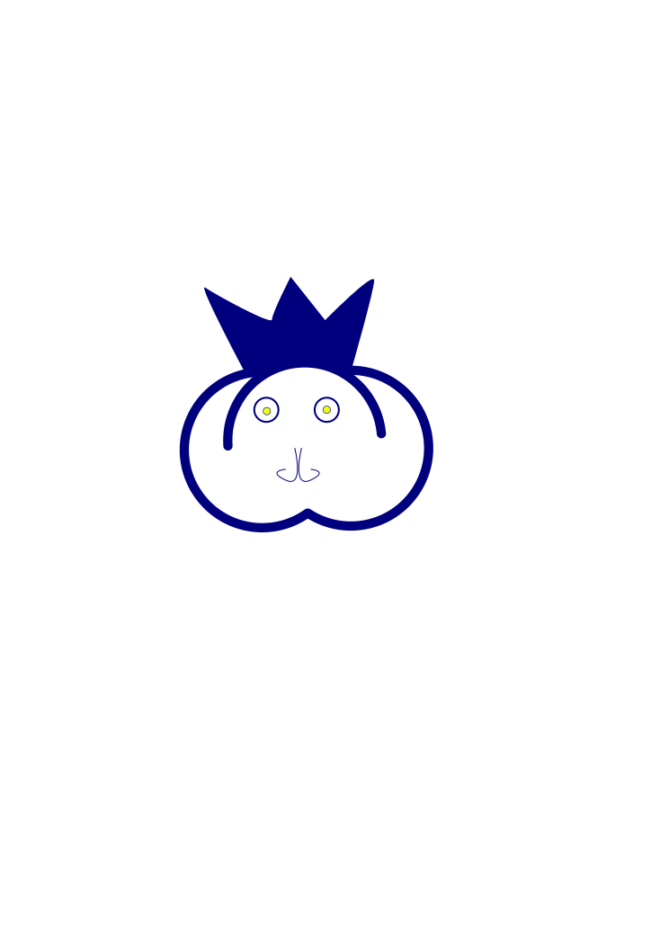 This features a blue and white cartoon character, which appears to be a monkey or an animal with a crown on its head. It is situated in the center of the picture, occupying most of the frame. The background consists of a plain tan color that contrasts with the vibrant blue and white character. This unique design creates an interesting visual effect, drawing attention to the main subject while maintaining a simple yet engaging composition.
