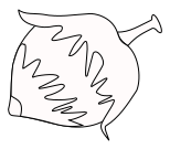 This features a simple drawing of an apple, with the stem and leaves depicted in black. The apple is shown from the side view, giving it a three-dimensional appearance. The lines used to create this drawing are clean and well-defined, making it easy to discern the various elements within the image. Overall, the drawing captures the essence of an apple with its stem and leaves in a visually appealing manner.