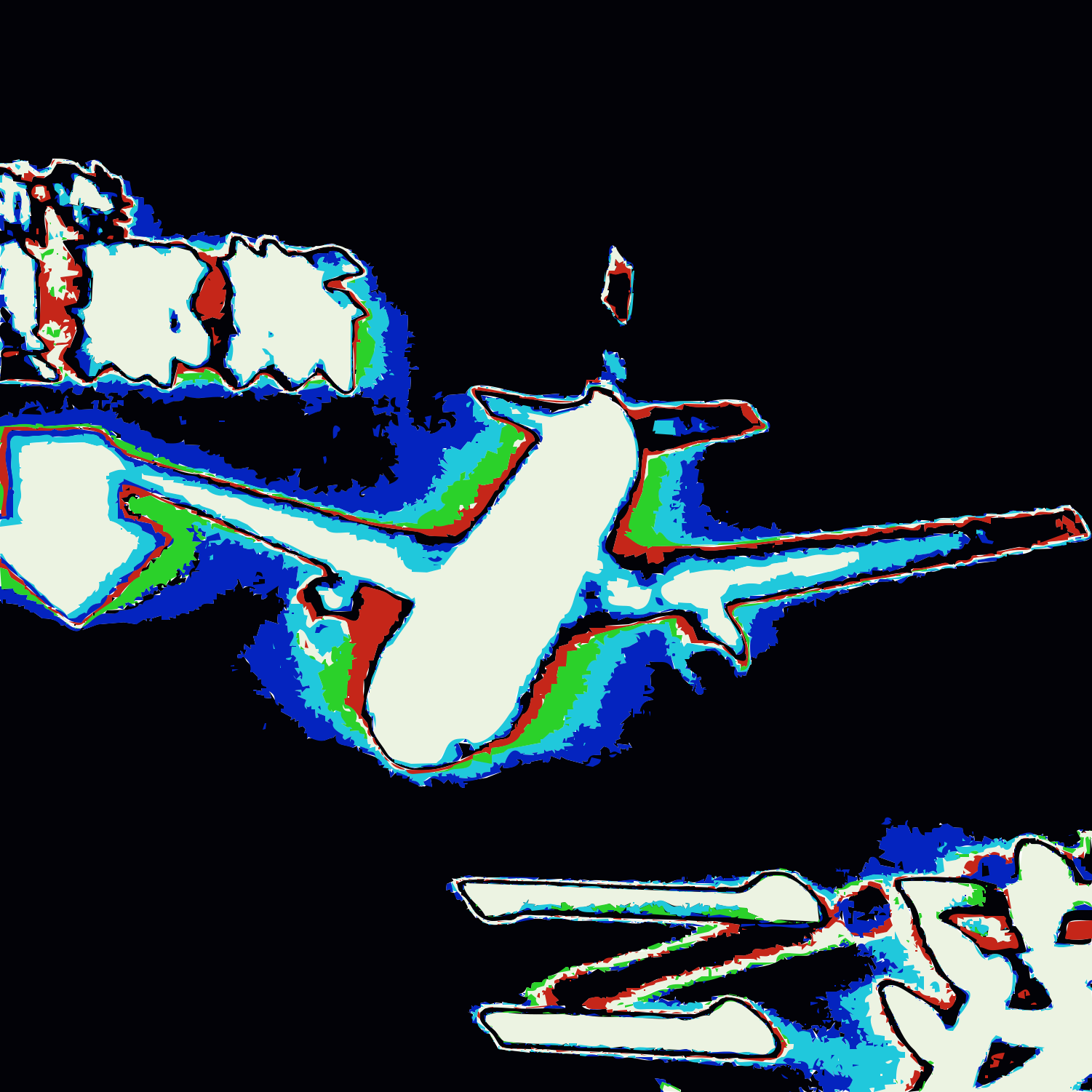 This is a colorful and abstract representation of an airplane. It features a large white plane with its wings spread out, giving the impression that it's flying through space. The background appears to be black, which contrasts with the vibrant colors of the airplane. The overall effect creates a visually striking image that captures the essence of flight and movement.