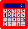 This features a calculator with red numbers and blue letters on the screen. It has a total of 14 digits, including the decimal point, which is located at the bottom right corner of the calculator. The calculator also includes an equal sign, represented by the letter "=" in the middle of the screen. This interactive calculator can be used for various mathematical calculations and provides a convenient tool for users to perform their tasks efficiently.