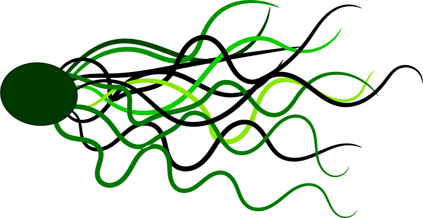 This features a green and yellow object, possibly an alien or a creature, with long tentacles trailing behind it. These tentacles are of various lengths and colors, including green, white, and black. They appear to be flowing in the air, creating a dynamic and interesting visual effect. The overall composition of the image gives off a sense of motion and energy, as if the object is moving or flying through space.