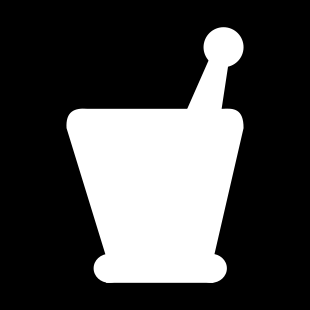 This features a stylized mortar and pestle in silhouette. It is an iconic symbol often used to represent the process of grinding or mixing ingredients together. In this case, it has been simplified into a simple outline, making it easily recognizable as a mortar and pestle. The black background further emphasizes the shape of the object, creating a striking contrast against the darker surroundings.