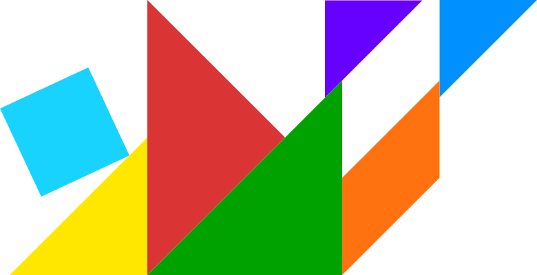 This features a colorful tangram, which is a Chinese puzzle made up of seven interlocking shapes. These shapes are arranged in various colors and patterns, creating an eye-catching display. The tangram consists of four triangles, two squares, one rectangle, and one pentagon. Each shape has its own unique color, making the overall composition visually appealing and engaging. This artistic arrangement showcases the versatility and creativity involved in creating a tangram puzzle.
