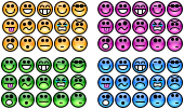 This features a collection of emojis, each group consisting of fifteen different colored smiley faces. These emojis are arranged in four distinct rows, with each row containing the same set of emojis but varying in color. The colors include pink, blue, green, and yellow, creating an eye-catching display of emotions. The arrangement of these emojis creates a visually appealing and playful scene that can be used for various purposes such as social media posts or digital artwork.