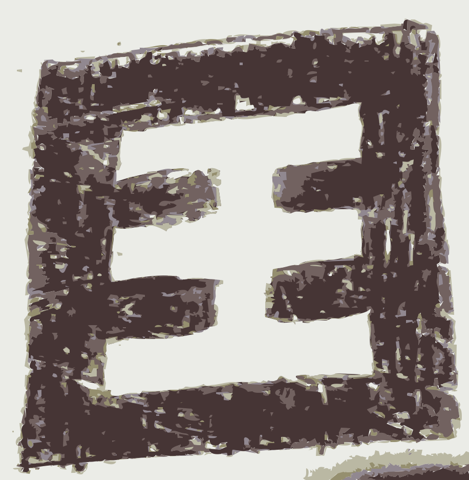 This is a square with an E in the center, surrounded by four smaller squares. Each of these smaller squares has a hole in it, giving the impression that they are missing pieces or broken. The overall appearance of the image gives off a sense of being worn out or aged, possibly due to its faded color and the fact that it is described as "for fun done in crayola!"