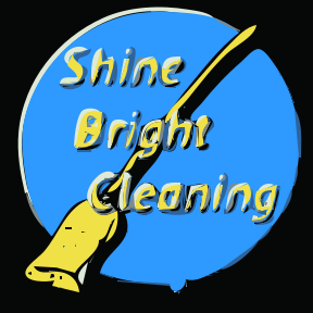 This features a blue circle with the words "Shine Bright Cleaning" written in yellow. A yellow broom is prominently displayed within the circle, adding to the cleaning theme of the logo. The overall design appears to be simple and straightforward, making it easy for viewers to understand the purpose behind the logo.