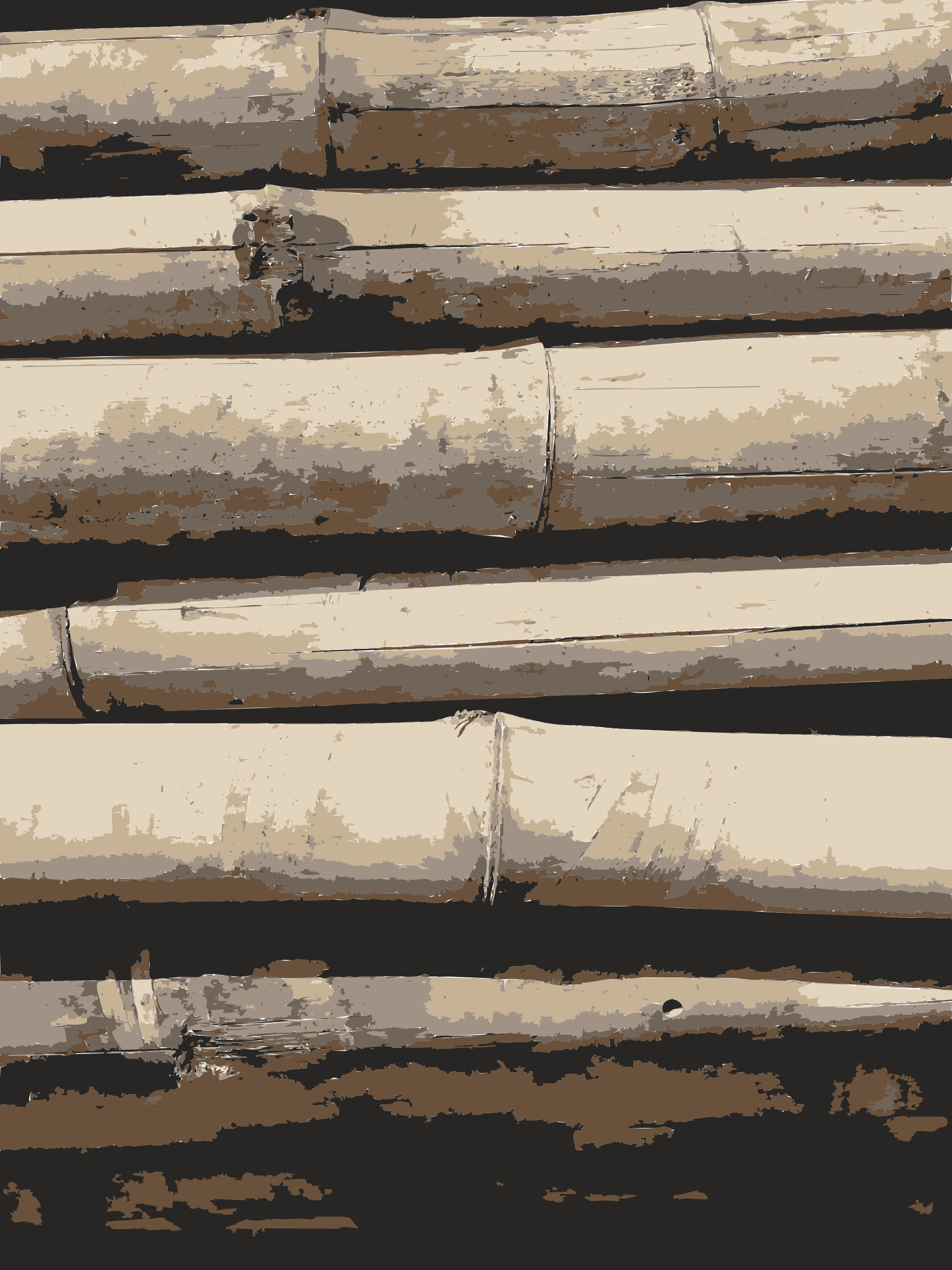 This features a stack of wooden logs, possibly bamboo or similar material. These logs are arranged in a pile and appear to be weathered, giving them an aged appearance. The logs vary in size and shape, creating a visually interesting composition. The overall scene gives off a sense of rustic charm, with the logs seemingly stacked for storage or display purposes.