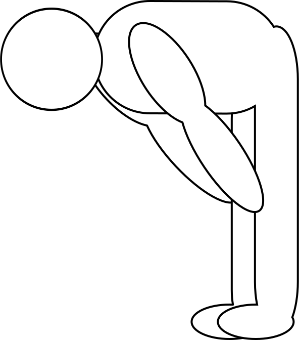 This features a man in an unusual position, with his back bent and knees up. He appears to be bending over backwards or possibly doing some kind of exercise. The drawing is done in black and white, giving it a classic feel. The man's body is depicted as a silhouette, emphasizing the shape and form rather than the details of his clothing. This artistic representation captures the essence of the subject without focusing on specific colors or textures.