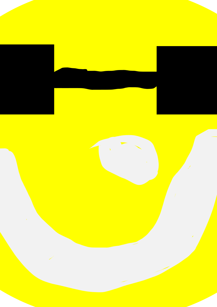 This features a yellow smiley face with gym weights for eyes. The smiley is happy and has a big smile on its face, giving the impression of a cheerful and positive atmosphere. The gym weights are placed in such a way that they appear to be the eyes of the smiley, adding an interesting twist to the traditional smiley design. This creative representation of a smiley with gym weights makes for an unusual yet amusing image.