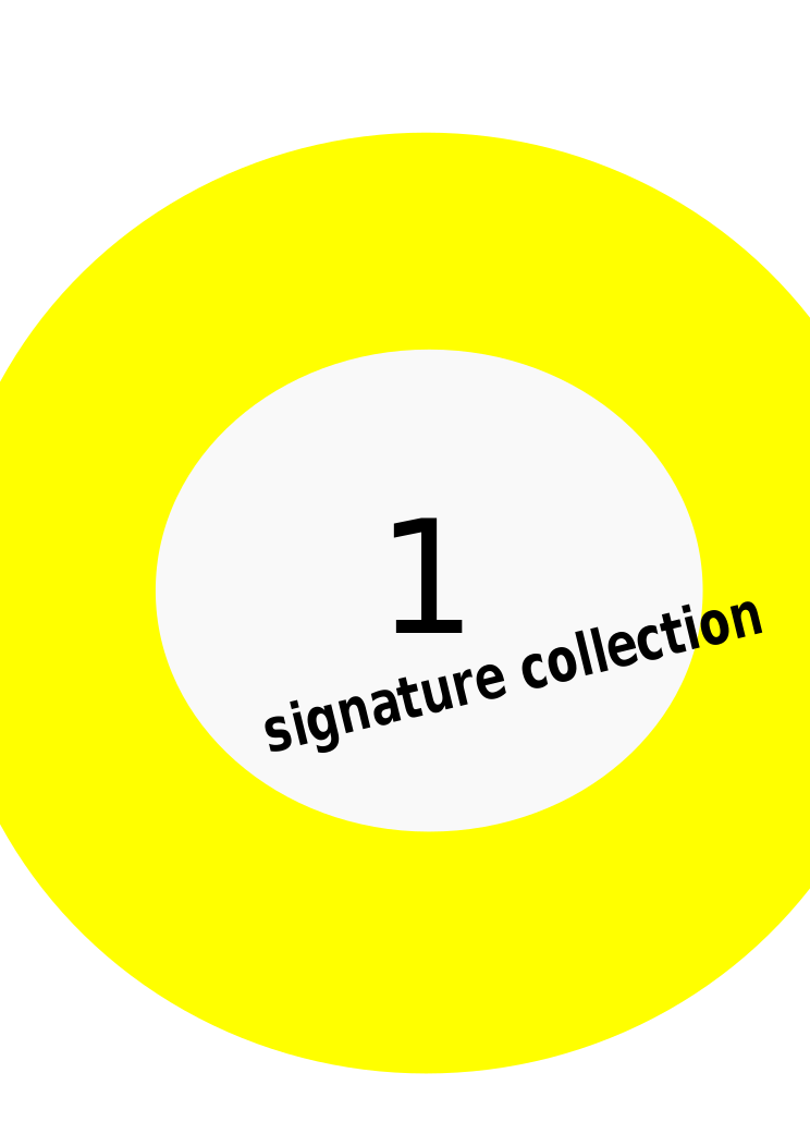 This features a yellow circle with the number one written in black on it. This could be an advertisement or promotional material for a collection, possibly related to artwork or other products. The use of a circle and bold numbers suggests that this is meant to draw attention and convey information about the collection. It's unclear what specific items are included in the collection, but the focus on the number one could indicate that it is an important aspect of the collection or represents the first item in a series.
