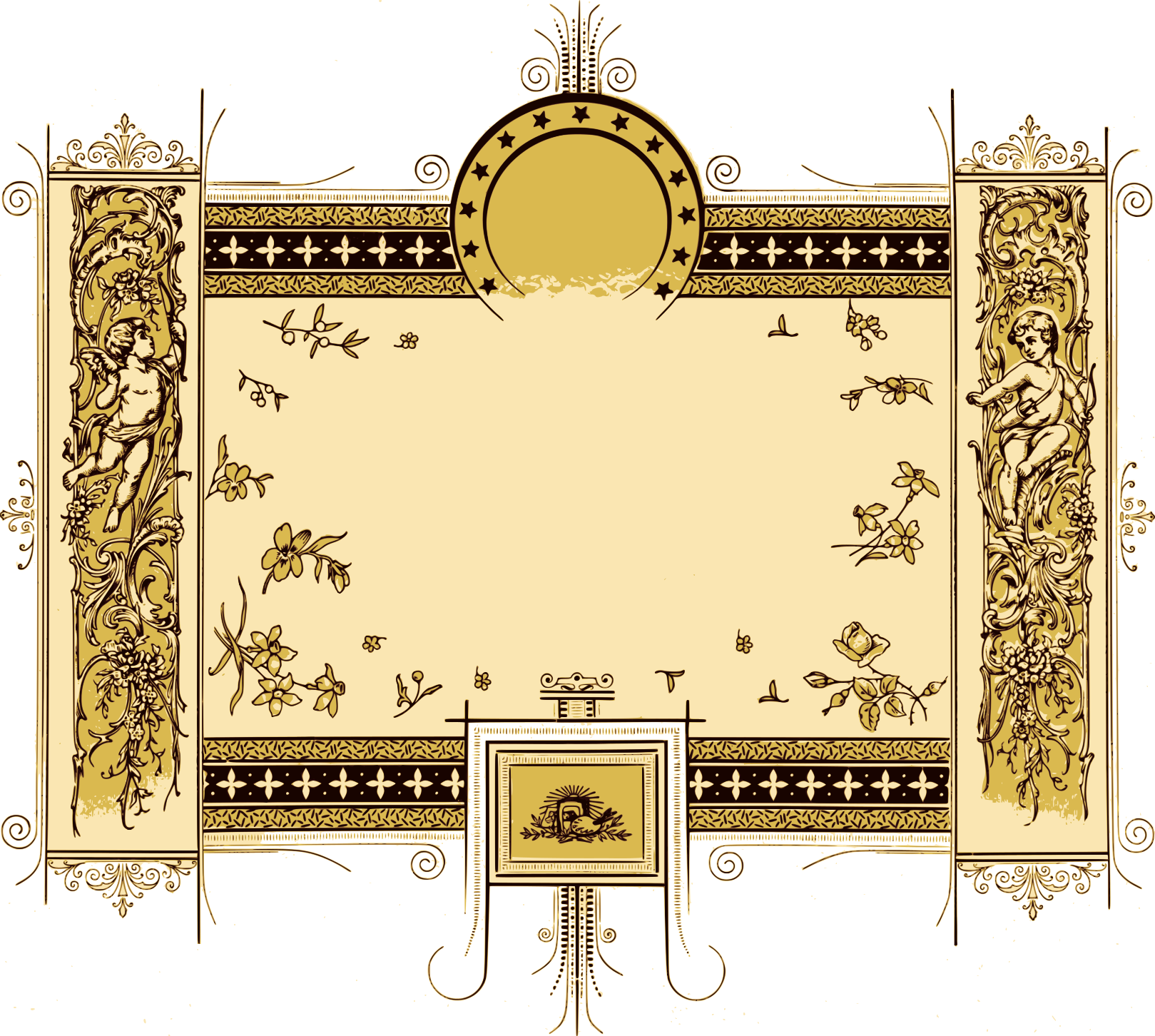 This features a beautifully designed frame with an ornate border. The frame is yellow in color and has intricate designs on its sides, including baby angels. The frame appears to be set against a white background, which further accentuates the artistic details of the design. This elegant piece of artwork would make for an attractive display or decoration in any setting.