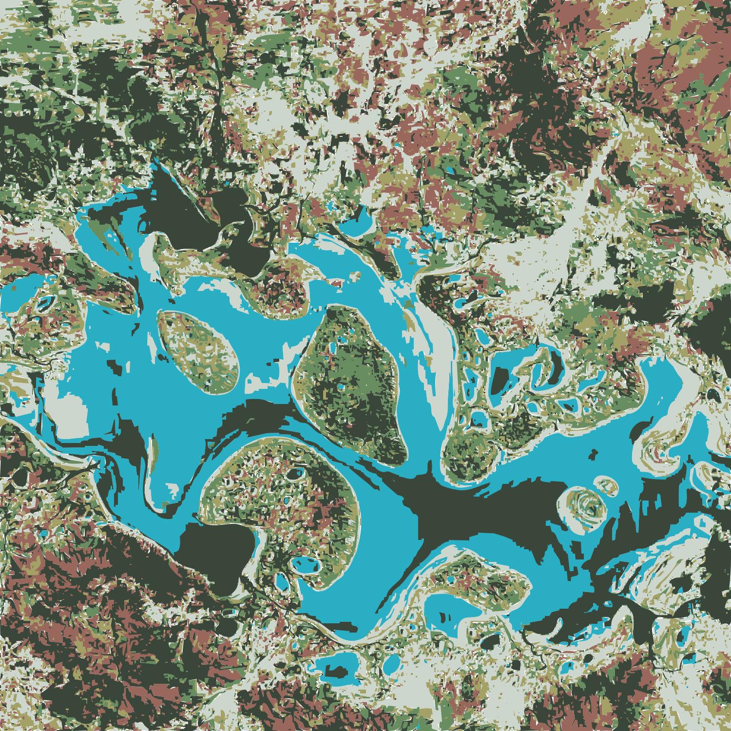 This is a colorful, detailed map of a large body of water. The water appears to be blue and green in color, creating an inviting atmosphere. The map features various shapes and sizes of land masses surrounding the water, giving it a unique and interesting appearance. The overall scene gives off a sense of depth and intrigue, making it an appealing visual representation of our planet's natural beauty.