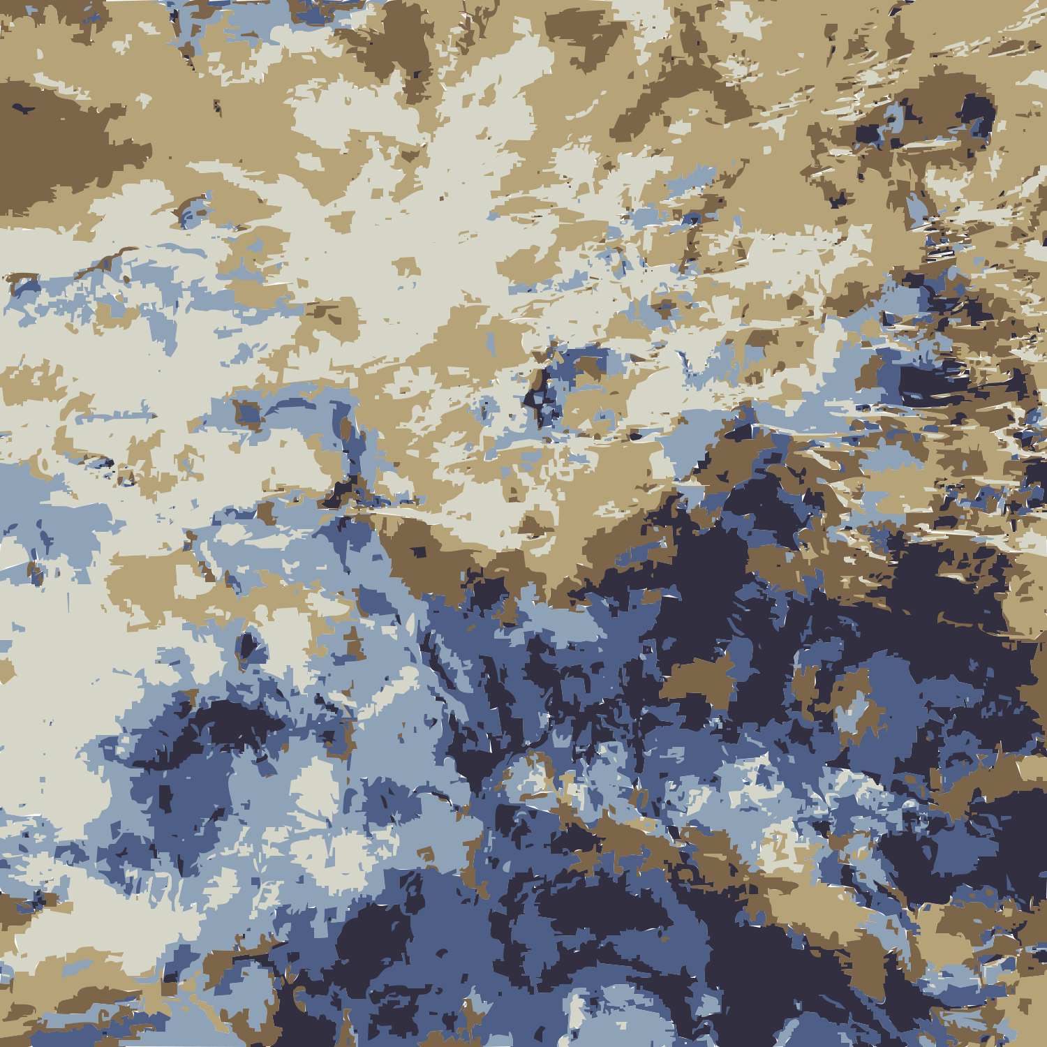This is a close-up of a cloudy, blue sky with some white clouds. It appears to be an artistic representation of the sky rather than a photograph. The clouds are scattered throughout the scene and vary in size and shape. The overall atmosphere of the image gives off a sense of depth and complexity, as if looking through a microscope at the intricate patterns within the cloudy sky.