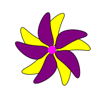 This features a stylized flower with purple and yellow colors. It is a geometric representation of the flower, making it suitable for use in various designs or flourishes. The flower's petals are distinctly shaped, giving it an artistic appearance. This type of flower could be used as part of a larger floral arrangement or incorporated into other design elements to add a touch of nature and beauty.