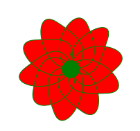 This features a red and green flower with a yellow center, which is likely a stylized Christmas flower. It has a geometric design that gives it an appealing appearance. This flower could be used as part of a flourish or incorporated into various designs due to its vibrant colors and attractive shape. The flower's red hue stands out against the green background, making it a striking visual element in any setting.