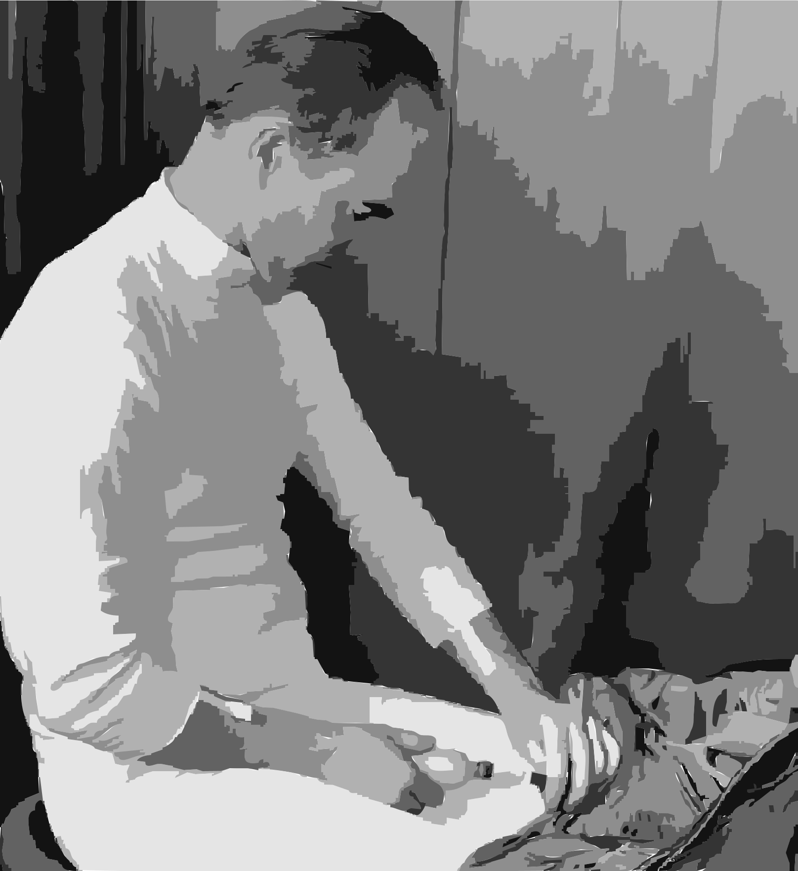 This features a man wearing a white shirt and sitting down. He appears to be in the process of putting on or adjusting his tie, which is located near the center of the scene. The man's hands are visible as he works on the tie, with one hand holding it close to his neck while the other hand reaches out towards him. The overall atmosphere suggests a moment of focus and attention to detail in preparation for an event or occasion.