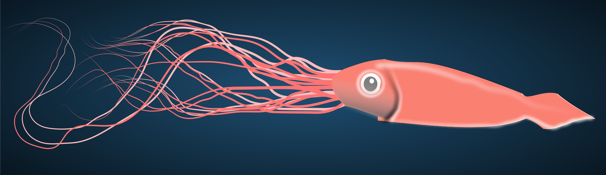 This features a large, red squid with long tentacles swimming in the ocean. It appears to be floating on top of the water, creating an interesting visual effect. The squid's body is predominantly pink and white, giving it a unique appearance. Its long tentacles extend outwards from its body, adding to its striking presence in the scene. Overall, this image captures the beauty and intrigue of marine life.