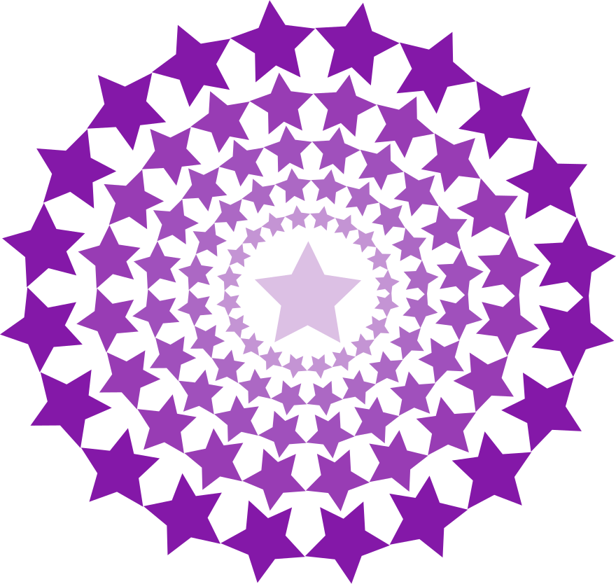 This features a purple star with five rings surrounding it. The central star is purple, and the rings are made up of smaller stars. This design creates an intricate pattern that resembles a flower or a geometric shape. The overall effect is visually appealing and captivating, making it an interesting focal point in the image.