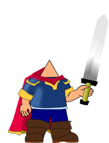 This features a cartoon character, possibly a knight or a superhero, holding a metal sword in its hand. The character is wearing a cape and has a shield on their chest, giving them an appearance of being ready for battle. The illustration is done with a simple design, focusing on the main subject without any additional details or background elements.