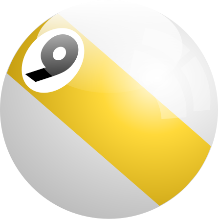 This features a round, white and yellow ball with a black number nine on it. The ball is positioned in the middle of a yellow stripe that surrounds it. This unique design gives the impression of a billiard ball, but its color scheme deviates from traditional pool balls. The combination of white, yellow, and black creates an eye-catching contrast against the white background, making this ball stand out as a distinctive piece.