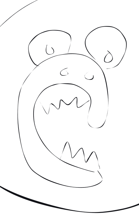 This features a drawing of an alien with sharp teeth, giving it a menacing appearance. The alien is depicted as having a mouth with teeth that are clearly visible and prominent in the design. The overall style of the drawing gives it a somewhat cartoonish look, but its teeth make it stand out as a unique and interesting piece of artwork.