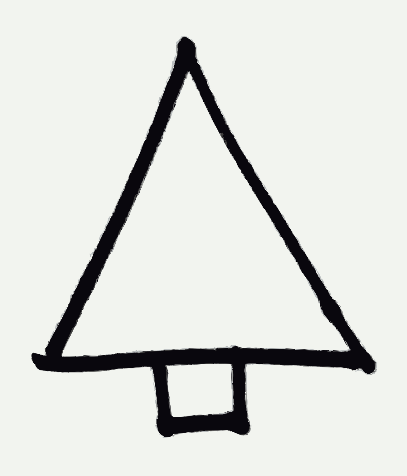 This features a simple drawing of a triangle, which is shaped like a Christmas tree. This black and white illustration has a unique appearance, as it is not an exact representation of the traditional tree shape. Instead, it showcases a more abstract interpretation of the iconic symbol. The triangle's design may evoke feelings of creativity or artistic expression, making it stand out from typical representations of trees.