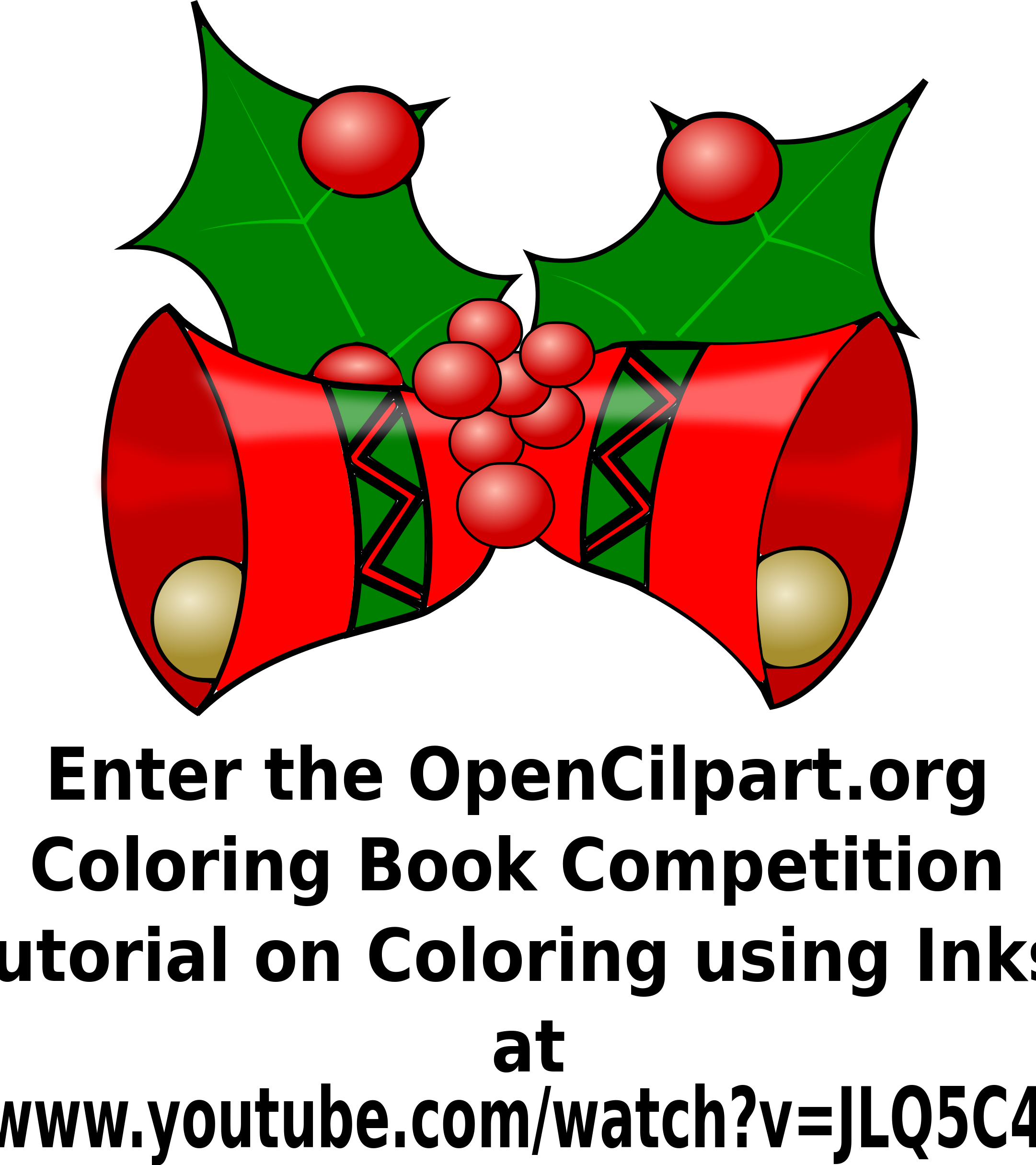 This features a colorful and festive design with red bells adorned with two leaves. These bells are arranged in an attractive manner, creating a visually appealing scene. Above the bells, there is a text that reads "Enter the Openclipart.org Coloring Book Competition." This suggests that the image might be related to a coloring book competition or contest hosted by the Openclipart organization. The design showcases a creative and engaging theme for potential participants to enjoy while entering the competition.