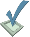 This features a blue check mark placed on top of a gray square. The check is prominently displayed, covering the majority of the square's surface. The overall appearance gives off a sense of approval or confirmation, as indicated by the checkmark symbol.