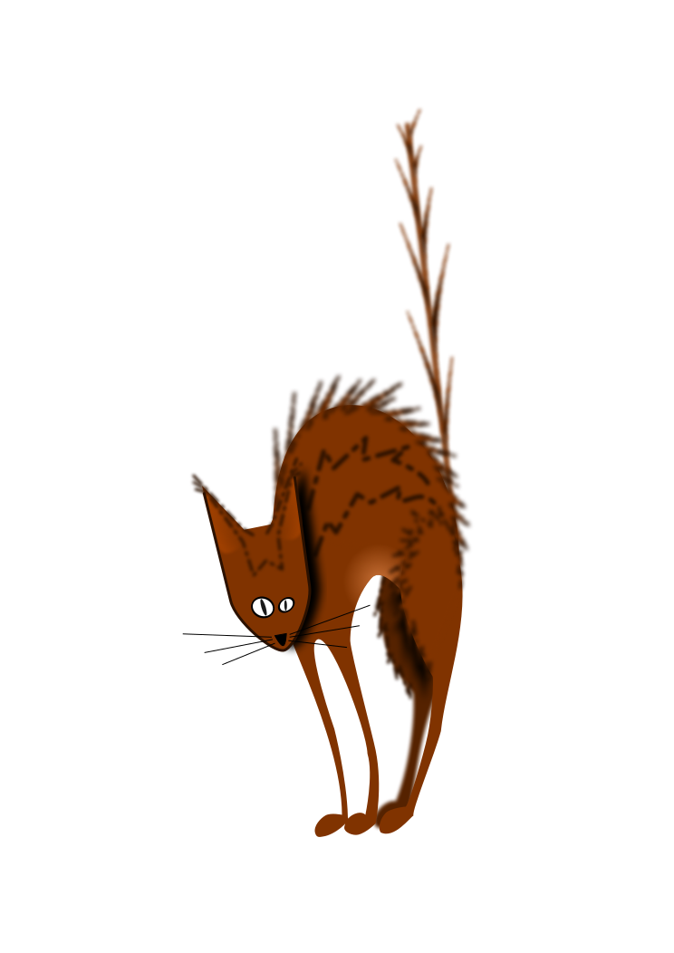 This features a brown cat with long whiskers, standing on its hind legs and looking upwards. It appears to be in an animated or drawn form, giving it a unique appearance. The cat's whiskers are quite prominent, adding to the distinctive look of the creature. Its posture suggests that it might be curious about something above it, possibly drawing attention to its surroundings. Overall, this image presents a quirky and interesting portrayal of a cat in an unconventional setting.