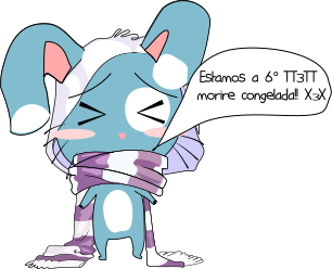 This features a cartoon rabbit with a scarf wrapped around its neck, standing in front of a sign. The rabbit appears to be wearing a bandage on one eye and has a sad expression on its face. It is holding up the sign that reads "estamos a 6 TTTEL" which suggests it might be related to a phone number or some sort of communication. The scene seems to depict a character from a comic strip, possibly conveying a message or story through this visual representation.