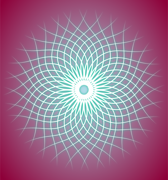 This features a large, circular design with a central point that resembles the sun. This design is made up of numerous small circles or dots arranged in a spiral pattern, creating an intricate and visually appealing pattern. The background color of the image is pink, which contrasts beautifully with the light blue hue of the central star. Overall, this artistic piece showcases a unique blend of geometric shapes and vibrant colors that make it stand out as a captivating visual display.
