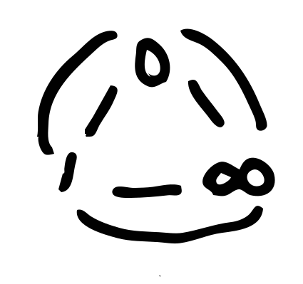 This features a black and white drawing of an odd-shaped object, possibly resembling a hat or a head. It is situated in the center of the picture with a number 0 inside it, giving it a unique appearance. Additionally, there is an infinity sign placed within the drawing, adding to its intriguing nature. The overall composition of the image creates a visually interesting and thought-provoking piece of artwork.