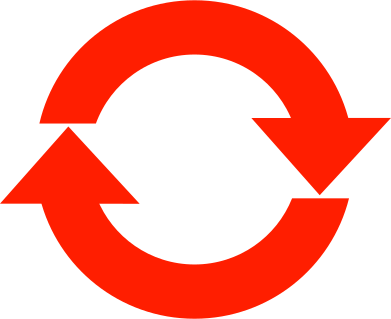 This features a red circle with two arrows pointing at each other, creating an iconic symbol. This design is commonly used to represent the concept of circularity or recycling, as it signifies the continuous movement and flow of energy or resources. The red color adds a bold and eye-catching element to the image, making it stand out against its background. Overall, this simple yet powerful visual symbol represents the idea of circularity in an elegant and memorable way.