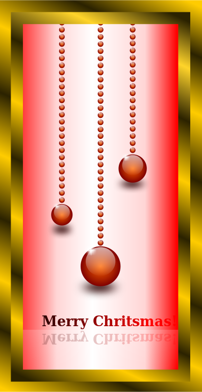 This features a red and white Christmas card with three ornaments in the middle. The ornaments are positioned at different heights, adding visual interest to the scene. The words "Merry Christmas" are written in red on the card, creating a festive atmosphere. The overall design of the card is visually appealing and captures the essence of the holiday season.
