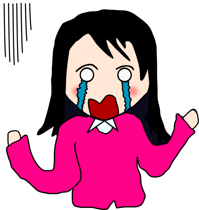 This features a cartoon character with big eyes, wearing a pink shirt and holding her face in her hands. She appears to be crying or sad, as indicated by the tears coming from her eyes. The character is depicted with a large head and a prominent nose, giving her a unique appearance. The overall style of the image suggests it could be an animated cartoon or a comic strip.
