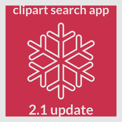 This features a red snowflake with white outlines, which is the main focus of the image. Surrounding the snowflake are words that say "clipart search app 2.1 update," indicating an updated version of the clipart search app. This suggests that the app has been improved or enhanced in some way to provide a better user experience for those who use it. The red background adds a vibrant touch to the image, making it stand out and draw attention to the snowflake and its accompanying text.
