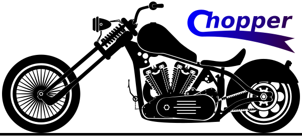 This features a black motorcycle with the word "Chopper" written on it. The motorcycle is prominently displayed in the center of the scene, taking up most of the space. It appears to be a close-up view of the bike, showcasing its design and details. The motorcycle's positioning suggests that it might be parked or stationary at the time the photo was taken.