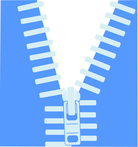 This features a blue background with an open zipper in the center. The zipper is made up of multiple parts, including a metal piece and several smaller pieces that make up the zipper teeth. The zipper appears to be part of a larger structure or object, possibly a garment or bag. The overall composition of the image gives it an artistic and visually appealing appearance.