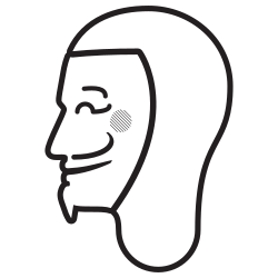This features a black and white drawing of a person's head with a smiling mouth, wearing a mask. The face is adorned with two dots on the forehead, giving it an interesting appearance. The drawing appears to be a simple outline or silhouette, emphasizing the facial features without any additional details. This artistic representation of a person's head can evoke various emotions and interpretations depending on the viewer's perspective.